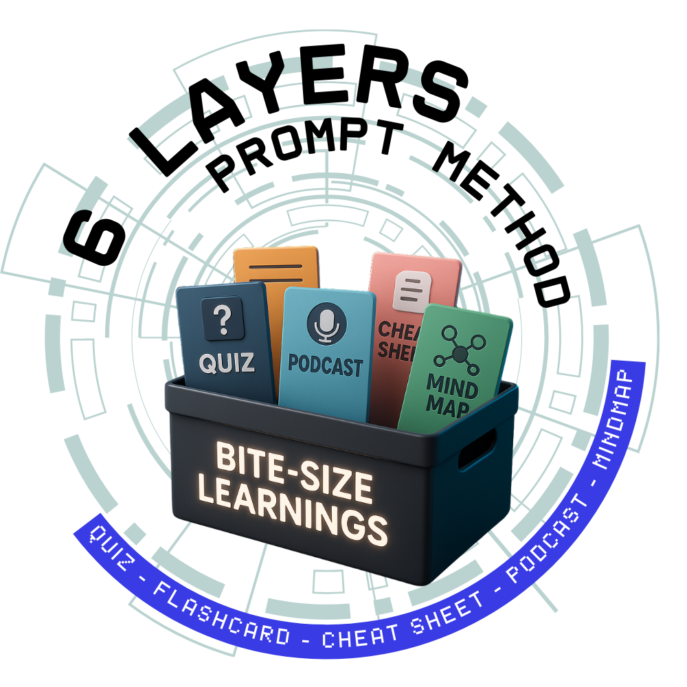 Unlock the power of AI prompts—fast. The 6-Layer Prompt Method Bite-Sized Learning Bundle gives you everything you need to master prompt writing in minutes a day. With easy-to-use tools like quizzes, flashcards, mindmaps, and more, you’ll learn how to think and prompt like a pro, without the overwhelm. Perfect for busy learners who want real results, not just theory.
